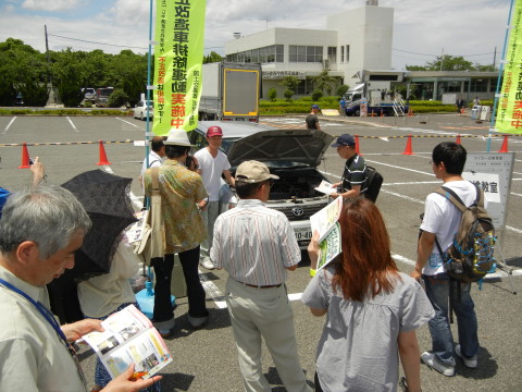 クルマ好きの愛好家や家族連れらや約200人が来場した。 トヨタ自動車の「プリウスPHV」(プラグインハイブリット)、「SAI」(ハイブリット)、三菱自動車の「i−MiEV」(EV)、日産自動車の「リーフ」(EV)、ホンダの「FCXクラリティ」(FCV)などが市場・展示され注目を集めた。 会場では、大阪府自動車整備振興会による定期点検教室やJAF大阪支部によるセーフティードライブ講習などを併設した。