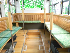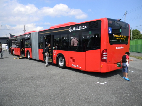 今年は24社局のバスが展示された。子供づれの来場者がバスの前で記念撮影するなど広い会場も朝から大勢の人で賑わった。会場内でのスタンプラリーやクイズやショー、ステージイベントなど恒例の催しをはじめ各社局のブースではバス関連グッズ販売に各社局員が一段と気合いを入れた。 展示バスではサブ会場の岐阜乗合自動車(株)の連節バス(全長18m、定員130人、座席数46席)の「清流ライナー」や、両備ホールディング(株)の「SOLARVE(ソラビ)」(エコロジーでハイブリッド、車内を白で統一、太陽電池使用、マルチアングルビジョン)や西日本鉄道(株)の「ぐりーん」(外装はグリーンを基調、内装は床やシート、つり革など木材を使用)が遠方より参加して人気を集めた。