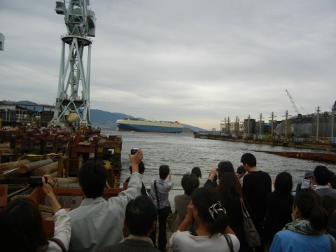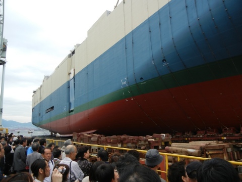 三菱重工業神戸造船所(神戸市兵庫区和田崎町)で10月5日、商船三井が発注した自動車運搬船“第1294番船”の命名・進水式が行われた。トヨタ自動車の輸送に使用される予定だ。