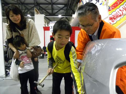 兵車協は打ち出し板金の体験コーナーや自動車のエンブレムの販売、ブロードリーフと神姫産業と連携をとり出展をするなど役員総出で来場者をもてなした。 >>2ページ目へ続く