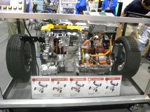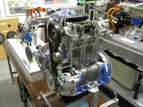 協議会は4サイクル・ガソリンエンジンとトヨタのハイブリットシステムのカットモデルを展示した。来場者は物珍しさに足をとめ、エンジンの構造を学んだ。