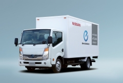 今回の東京トラックショーではリーフなどで培ったEV技術をトラック分野に応用すべく、「日産リーフ」のコンポーネントや、その他のEV関連技術を装備・搭載したトラックを出展する。 展示するのは、「アトラスF24」をベースにした「e-NT400アトラス コンセプト」、「アトラスF24リチウムイオンバッテリー式冷凍車」、「アトラスF24給電車」の3車種と、「NV200バネットタクシー」、「シビリアンハートフルサルーン」も出展する。 日産自動車の村上秀人執行役員(LCV事業本部担当)は、「当社は、ゼロエミッションの領域でリーダーとなるべく、『日産リーフ』をはじめとする乗用の電気自動車に加え、商用の電気自動車の開発・普及にも注力していきます。現在、小型商用車『NV200バネット』をベースとした電気自動車を、将来の市場投入に向けて準備中です。今回のトラックショーでは、トラックの電気自動車が生み出しうる価値をお伝えすべく、『日産リーフ』のコンポーネントを搭載した『e-NT400アトラス コンセプト』をはじめ、数々のEV技術を応用した車両を出展しております。その他の出展車種とあわせ、日産の商用車がビジネスシーンに提供する様々な価値に触れて頂ければと思います。」と述べた。 主な出展車両の概要は以下の通り。 「e-NT400アトラス コンセプト」 (参考出展) 「e-NT400アトラス コンセプト」は、「アトラスF24」に、「日産リーフ」のコンポーネントを搭載した電気自動車のコンセプトカー。CO2や排気ガスが一切出ない特徴を活かすことで、従来は乗入れに制限があった場所に直接乗入れることが可能。航続距離はJC08モードで100km。 「アトラスF24リチウムイオンバッテリー式冷凍車」 (参考出展) 「アトラスF24リチウムイオンバッテリー式冷凍車」はフォーアールエナジー株式会社(*)の開発するリチウムイオンバッテリー電源システムに電動モーターを組合せて冷凍用のコンプレッサーを稼動させる世界初の商品。高効率の電動コンプレッサーによりCO2排出量を削減に貢献しながら、車両エンジンが停止しているときも、排出ガスを出さずに荷室を冷蔵・冷凍させることが可能になった。 また、シャシー上の冷媒配管を廃止することにより、冷媒ガス漏れのリスクを低減させ、地球温暖化の防止にも効果がある。 同車はさらに革新的な2つの技術を搭載している。アラウンドビューモニターをトラック用として進化させた「マルチビューモニター」は、自分の車を見下ろしているようなアングルの映像が、ハイマウントディスプレイに表示され、車をバックさせる時に見づらかった後方や助手席側も確認することが出来る。「ボックスイージーエントリーシステム」では、荷物で両手がふさがっている時もフロントドアだけでなく、荷室扉のロック、アンロックがボタン一つでできるので、作業の効率を向上させることが可能となった。 「アトラスF24 リチウムイオンバッテリー式冷凍車」は日本での発売を2012年秋予定している。 搭載技術のマルチビューモニターについては2012年春、ボックスイージーエントリーシステムについては2012年秋の発売を予定している。 「アトラスF24給電車」 (参考出展) 「アトラスF24給電車」は72kWh、リーフ3台分のバッテリーを搭載している。これは日中の電力のピーク時に20人程度のオフィス(250m2)で4時間使用できる電力に相当。電力供給に余裕のある夜間電力で充電し、電力需要の高まる昼間に、夜間に蓄えた電力を使用することで、電力消費のピークを和らげることができる。また、停電などの非常時の電力不足時には、非常用電源として使用することもできる。