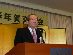 坂本会長はあいさつで、「安全を最優先にやっていかなければならないが、それには一定のコストがかかり、しっかりした適正運賃の確保が必要。さらに、環境コストも重く圧し掛かってきているし、『トラック運送業界で頑張っていこう』という気持ちを持った若い人が集まらなくなっている。様々な問題を抱えているが、皆さんのご支援、ご協力を得ながらやっていきたい」と抱負を述べた。 近畿運輸局の沢井俊・自動車交通部長は運輸事業振興助成交付金問題に触れ、「昨年末に(石津緒)運輸局長と近畿の各府県を回ったが、なかなか厳しい状況で、法制化されたが、今のところ進展していない。しかし、今後も働きかけをしていきたい」と話した。 この後、土井眞三・大阪運輸支局長の発声で乾杯し、祝宴に移った。