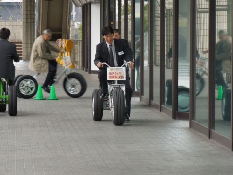 対象となったのは近畿四国地区のブリヂストンタイヤ販売店の300社程度。業態は専業店、ディーラー、用品店、ガソリンスタンドと様々。特記すべきはその規模で2005年プレイズの発売以来の発表会、試乗会となる。 対象者は午前と午後に振り分けされ、スライドによる説明会の後半には現行タイヤと新エコピアとの比較試乗会が催された。試乗会は周辺道路を用いての大掛かりなものでドライバーは各支社で実際に販売へ携わる社員。対象者は後部座席へ乗車し、段差やマンホール、道路の繋ぎ目での突き上げ音の大小、レーンチェンジ時の車両のふらつき度合い等、着目点、改善点をお互い確認しあっての試乗会であり実際に体感できるレベルのものであった。(ラク性能の確認) また、下り坂(積載車より。写真参照)を利用しての転がり抵抗の改善を示すテストも行われた。これはタイヤのみ異なる同一車種に同じドライバーが乗り込み、どれだけ転がるかを比較するテストであり新エコピアを装着した車種は現行タイヤを装着した車種よりも長い距離を転がる事が確認できた。(エコ性能の確認)。現在タイヤ購入を検討しているユーザーは販売員の説明のみであるが今回の試乗会のように購入検討時に乗り比べ、実際の商品を体感することで、より説得力ある商談が出来るのではないかと感じた。 1月から現職のブリヂストンタイヤジャパン(株)神林幸司支社長は国内5つある販売会社の中でトップの売り上げを目指す、意気込みを示した。現在5つあるブリヂストンタイヤジャパン(株)(北日本、関東、中部、近畿四国、西日本)の中で近畿四国支社の売上げは4位(08年実績ベース)。全国的に2月現在冬用スタッドレスタイヤの新たな需要は見込めず、今回の新型エコピアの投入はブリヂストングループにとって起爆剤となりそうだ。発表会、及び試乗会を通じて感じたのは積極的な商品展開はさることながら経営層から販売員まで自社商品に対する深い信頼と商品知識を持ちながら商品力だけに頼らない営業力、組織力を感じ取ることの出来る発表会であった。