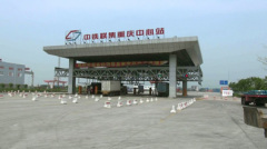 鉄道コンテナターミナル −専用クレーンで積み降ろし− 真新しい道路の脇には、i Phoneなどの生産で有名な電子機器メーカー「FOXCONN」の広大な工場敷地が広がり、一部で操業が始まっている。立体交差に差し掛かると、右手に鉄道コンテナターミナルが見えてきた。敷地内に向かう奥行800m、幅2 kmものゲートでは、絶え間なくコンテナトレーラーが往来している。 2本の引き込み線の両脇にはコンテナが並び、専用クレーンで積み降ろしが行われている。港湾バースでの大型船舶の代わりに、鉄道シャーシがあるといったイメージである。 ここからは欧州に向けて、ヒューレットパッカードが日々貨物を鉄道で輸出している。 >>2ページ目へ続く