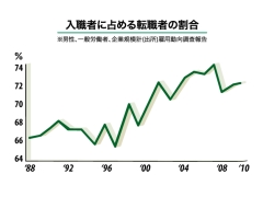 企業経営者とは、ズバリ、リスクにチャレンジする人だと言えます。 様々なリスクの中でも、最近 特に注目されつつあるのが労務管理に関するリスクです。90 年代初頭からの低成長期において、会社と社員の関係は大きく変わりつつあります。結果として、トラブルが増加しているのです。 会社を経営し、事業を発展していく上で、社員を雇用することを避けては通れません。ところが最近は、可能な限り社員を雇わずに会社を運営しようとする傾向が多く見られます。そこには費用の問題だけでなく、“ 労務トラブル”があったのです! 右のグラフは、転職する人の割合を示したものです。働く人にとって「職場を変わることへの抵抗が薄れてきた」ということがよくわかりますね。こんなところも欧米化してきたと言えるのでしょうか? ここ日本でも、労働争議に関する訴訟が急増しています。 急増する労務トラブル 私の事務所に寄せられる相談の多くは、社員と会社の間の ちょっとした“ 行き違い”に端を発するものばかりです。そうした案件に携わるうち、これからの経営者... 特に中小企業経営者に、ぜひとも理解し、そして実践して行って欲しいテーマが、いくつか見えてきました。これから12回の連載を通して、読者の皆様と一緒に学んでいきたいと思います。 ご意見やご感想、ご希望のテーマやご質問などがありましたら、ぜひお寄せ下さい。この企画が、皆様のより良い会社経営に、少しでもお役に立てれば幸いです。 >>2ページ目へ続く