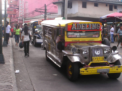 主要な交通の足はジプニー、トライシカル。 首都マニラは他の地域と異なり、自家用車・バス・タクシーなども多い上に電車もあるが、やはりジプニーは大切な交通手段である。 *ジプニーは、ジープ型の乗り合いタクシー。 2〜4tトラックのエンジン 及び シャーシを使って自作されることが多く、小型の10人乗り程度〜大型の30人乗り程度まで、形や大きさも様々。 ジプニーは、ボディー以外のほぼ全てのパーツが、日本車の中古の流用品で作られており、日本車なくして この国の生活の足を支えるのは難しい。 *トライシカルは、バイクにサイドカーを付け、沢山の人が乗れるように改造したもの。 >>2ページ目へ続く
