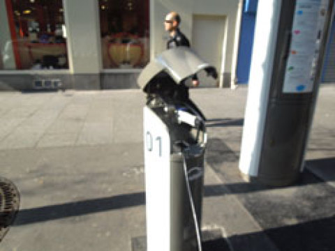 オートリブの特徴は何か?と質問すると、ずばり「One Way利用(乗り捨て)の実現だ」と返って来た。事実、「どのようにOne Wayを実現したのか?」には注目が集まっている。 しかし、その方法は案外とアナログなものだ。 アンバサダーが溜まった車両を運転して、空いているステーションに移動させる。行き場のない車はAuto Parkに一旦集められ、1日40〜100台を、独自のルールとオペレーションに基づいて配置するのだという。つまり人海戦術だ。 パリでは、ヴェリブ の自転車をたくさん積んで走るトラックとスタッフをよく見かける。ヴェリブと同様にオートリブもまた、車両を移動させているのだ。 オートリブは加盟しているイル・ド・フランス内でしか使用出来ない。エリアを出ようとしているブルーカーに対しては、オペレーターが警告する。 車両の管理が出来なくなるからだ。 One Wayを実現するためには、日本でもエリアを限定しないと、車両の管理が出来ないだろう。東京都内限定、京都市限定といった利用なら機能するのではないだろうか? 貸出場所はいくつある? 3月16日現在、イル・ド・フランスの47地域で、会員登録が出来るEspace(“ Ki osk:キオスク” の愛称で呼ばれている)が45カ所、貸出と返却を行うSt ati on(ステーション)が300カ所設置されている。これまで全Kioskに説明員が駐在していたが、休憩場所やトイレの確保などの問題もあり、今では整頓されているか?の確認作業のために巡回している。 使用されるEVは“Blueca(r ブルーカー)”の愛称で呼ばれており、900台が設置済み。毎週新たなステーションが開設されており、夏までに1,200のステーションと1,700台のブルーカーを設置する目標だ。1ステーションにはブルーカーが4〜6台程設置されていて、充電器はEVの数だけ設置してある。 日本のカーシェアリングとは違い、ステーションの駐車スペースは路上に設けられている。スペースはボロレが自治体から借りており、ちょうどバスの停留所のようなイメージだ。複数のステーションを固めて設置してあり、原則500m毎に設置する目標だ。実際にはだいたい100m毎(徒歩2分以内)に設置されている。 オンライン予約は現在出来ないが、オンラインでの会員登録が5月15日から開始予定。電話での予約は可能だ。使用料金は、駐車代、電気代、保険代込みの価格だ。 Autolib’の利用実績は? パリ市民の仕様状況についてColombier氏は、「パリ市民も疑心暗鬼なようで、システムがちゃんと機能するのか?様子を見ているようだ。まず、男性が使用し始めており、女性は男性が上手く使いこなすのを見て、使い始めているようだ」と語る。 観光インフォメーションからの問合せも増えているそうだ。 「アメリカからの観光客が、メトロやバス、タクシーの代わりに、ブルーカーを乗り回すので、驚かされる」と、笑いながら話してくれた。オートリブは海外旅行者も利用可能なため、旅行客がスマートに利用している事例も多いと言う。 また、往診に使う医者も多いだけでなく、メトロやバスよりも確実に利用できるため、ビジネスマンも使用している。 まだまだ利用が始まったばかりで、徐々に利用者が増えている状況だが、3月16日現在、毎日800台(A to Bを1回とカウントした場合)がレンタルされ、1日の平均利用時間は4時間程度とのことだ。 EVの充電はどうやってするの? ブルーカーの充電器等は、ボロレの子会社のIERが開発製造する。充電には、急速充電器ではなく普通充電を使用。パリの電圧は220Vで、周波数は50Hzなため、急速充電を使用しなくても、一般の電圧で運営がまかなえるようだ。 ステーションでは、貸出機器が自動的に、最も蓄電量の多い車に誘導してくれる。満充電になっていなくても、市内を走行する程度であれば、問題ない。また、走行中に充電がなくなりそうな場合は、オペレーターと通信し、近くのステーションで代わりのブルーカーと交換してもらえる。 改善はどのように?今の課題は? メールやFacebookで利用者の意見を収集して、1つ1つ丁寧に回答しながら対応している。現在、手をこまねいているのが、多くのユーザーがEVの乗り方を知らない事。パリを走る自動車のほとんどはMT車のため、「使い方が分からない」といった問合せが多く寄せられるそうだ。せっかくカーナビの映像によって、使用方法を説明しているにも関わらず、ほとんどの利用者がスキップしてしまう。そのため、近々HP上に、紹介ページを設ける予定だ。 Bollore’は黒字? ボロレ担当者は「昨年12月から開始したところで、1日の使用も800台程度。毎日のようにステーションを増やしているところで、収支バランスは明確でない」と話す。テレビ通信やKioskでの配置スタッフなど人界戦術をとっているため、黒字化していない状況だ。オートリブの運営には年間8000万ユーロのコストがかかるが、目標としているのは、年間8万人が週に2回1時間使用する稼働率だという。 オートリブで働くスタッフ“アンバサダー”は、朝・昼・晩の3交替で