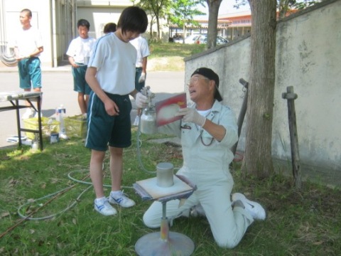 兵庫県自動車車体整備協同組合に加盟する匠のメンバーは、6月29日に加東市立社中学校(156人の中学2年生対象)で開かれた12職種による「キャラバン隊」へ出張した。メンバーらは中学校への出張が最後となることを、惜しみながら中学生らに塗装方法を手とり足とり教え、新しいものづくり体験館での指導に期待を馳せた。