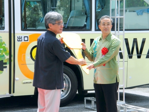 沖縄県は7月18日、電気バス「ガージュ号」完成披露式を行った。