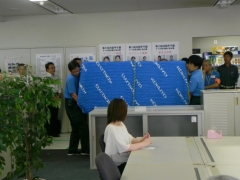 コクヨグループのコクヨファニチャー(大阪市東成区)の子会社で、オフィス家具などの運送、搬入、組み立て、設置を手がけるコクヨロジテム(同)は8月4日、大阪市東成区の本社で配送員の納品技能と接客マナーを競い合う「共配甲子園」決勝戦を開催した。