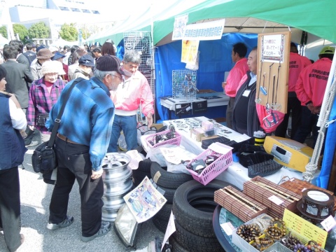 兵庫県自動車車体整備協同組合の垂明三木支部は今年も11月3、4日に、三木の金物まつりに出展し、今年は中古タイヤやエンブレム、特売価格のETC車載器など扱っている。