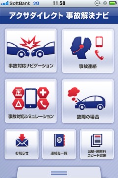 アクサ損害保険(アクサダイレクト)は1月18日、交通事故の解決に役立つ機能・コンテンツを搭載したiPhone向けアプリ「事故解決ナビ」の提供を始めた。 「様々な場面で必要な情報や機能を提供することで、顧客に事故解決までナビゲートしていく」とのコンセプトに基づく企画。アプリを利用することで、事故の備えた事前学習からフローチャートを使った事故現場対応、事故連絡までを行うことができる。 地図を利用して事故の状況が送信できる業界初の「事故状況マップ」をはじめ、インタラクティブなビジュアルコンテンツの「事故対応シミュレーション」・「過失割合クイズ」も用意し、直感的な操作性と視認性を重視した。