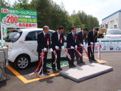 ガソリンスタンドの運営などを手がける智頭石油(鳥取県八頭郡智頭町)は5月15日、鳥取市内でEVを使ったカーシェアリング事業をスタートさせた。カーシェア事業は、鳥取県内で初。三菱自動車のEV「アイミーブ」1台でサービス提供を始め、今後は台数を増やしていく方針。 車両設置場所は「デイサービスあらいぶ」で、カーシェア車両1台当たり年間2000円を3年間にわたって補助する「とっとりEVカーシェア推進事業」を活用。入会金は当面無料で、月会費1000円。料金は15分200円のほか、利用時間に応じて6時間3000円、12時間3500円などのパック料金も用意した。 5月15日に行われたEVカーシェアリングの開始式には、智頭石油の米井哲郎社長のほか、「デイサービスあらいぶ」施設長でアドバンの谷口信社長、秦日出海・中国運輸局鳥取支局長、鳥取市の深澤義彦副市長、平井伸治・鳥取県知事らが出席。今後のカーシェア事業の発展に期待を込めた。