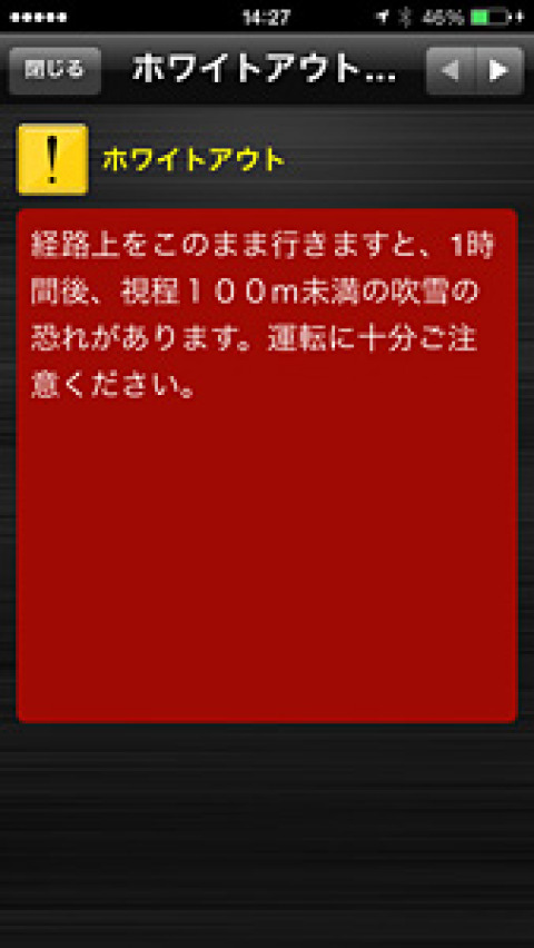 Hondaは、ドライバーの危険回避を支援することを目指し、2014年1月15日(水)から3月31日(月)までの期間に北海道限定で、吹雪による視界不良情報を車載ナビゲーションやスマートフォンアプリに配信するサービス「ホワイトアウト予測情報(*1)」の試験運用を行う。 このサービスは、ドライバーの現在位置の周辺30km四方、あるいはドライバーの走行ルートの周辺30km四方(*2)で、視界不良になるほどの吹雪に遭遇すると予測された場合(*3)、車載ナビゲーションやスマートフォンアプリの「インターナビ ポケット(*4)」に、視界不良の度合いを視程(*5)100m未満と視程200m未満の二段階で表示。遭遇予測時間と場所を表示するとともに、音声で注意喚起を行う。 さらに、ドライバーが視界不良になるほどの吹雪(視程100m未満)に遭遇した可能性があることを知らせるメールを、インターナビのサーバーから家族などの事前に登録したメールアドレスに自動配信する。 Hondaはこのサービスの試験運用を通してインターナビのサービス強化を図り、安全・安心なドライブの支援に取り組む。 *1 予測情報の配信機能の利用にあたってはインターナビ・リンク会員登録が必要 *2 但し走行ルートのうち現在地地点からの距離が200km以上である場合についてはそのエリアで視界不良になるほどの吹雪に遭遇すると予測が出ていても予測情報は配信されません *3 一般財団法人 日本気象協会から提供される吹雪視程予測情報に基づく *4 Honda純正カーナビゲーションシステム「Hondaインターナビ」のナビゲーション機能が利用できるHonda純正ナビアプリ。ナビゲーション機能はこのアプリの有料オプションとして設定。 *5 空を背景に黒っぽい対象物が目視で確認できる最大距離 顧客からのお問い合わせは、 「お客様相談センター 0120-112010(いいふれあいを)」で受け付けている。