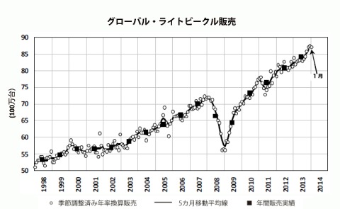 2014年1月の世界新車販売台数は年率換算で8,710万台
