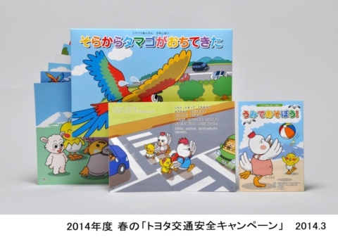 今回のキャンペーンでは、交通安全教材としての絵本約255万部を全国の幼稚園・保育所の全新入園児に、交通安全紙芝居約4.8万部を全国の幼稚園・保育所・図書館・児童館等へ贈呈する。 加えて、夜間の交通安全を啓発するチラシ約78万部を、全国の販売店等にご来店いただいたお客様に配布する。これらはご家庭での交通安全教育など、広くお役立ていただけるよう、ホームページへも掲載する。さらに、ホームページからお申込みいただいた方より抽選で20名様にトヨタ純正のチャイルドシート、ジュニアシートをプレゼントする。 この活動は1969年より毎年実施しており、本年で46年目を迎える。交通安全絵本と交通安全紙芝居の累計発行部数は、それぞれ約1億3,369万部と約147万部になる。 キャンペーンの全体概要は、以下のとおり。 <春の「トヨタ交通安全キャンペーン」概要> ■交通安全教材の贈呈 (1)クックのこうつうあんぜんえほん「うみであそぼう!」 対象:全国幼稚園・保育所の新入園児・保護者 内容:道路への急な飛び出しの危険性・チャイルドシートの着用 贈呈方法:全国の車両販売店より贈呈 部数:約255万部 (2)クックのこうつうあんぜんかみしばい「そらからタマゴがおちてきた」 対象:全国幼稚園・保育所・図書館・児童館 内容:自転車との衝突も想定した道路への急な飛び出しの危険性・信号・横断歩道の意味 贈呈方法:全国の車両販売店より贈呈(図書館・児童館にはトヨタより直接配布) 部数:約4.8万部 ■啓発チラシの配布 対象:ドライバー、歩行者 内容:「夜間の交通安全」(早めのライト点灯・反射材の着用啓発) 配布方法:全国の車両販売店・L&F店・部品共販店・レンタリース店 店頭、トヨタ関連施設にてお客様に配布 部数:約78万部 配布期間:4月1日(火)〜4月30日(水) ■トヨタ純正のチャイルドシート、ジュニアシートプレゼント http://www.toyota.co.jp/ehon/ 応募期間3月18日〜6月30日