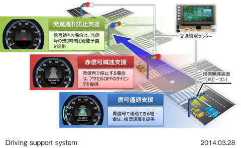 ホンダは、これまで参画してきた新交通管理システム(UTMS:Universal Traffic Management Systems)の研究開発の一環として、栃木県警察、一般社団法人UTMS協会と連携し、2014年4月に栃木県宇都宮市で信号情報活用運転支援システムの公道実証実験を開始する。実験では、同システムの実用化に向けた最終検証として、システム全体の機能および効果を、大規模で長期的な公道実走により検証する。