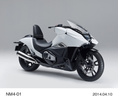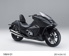 このNM4-01は、「近未来」と「COOL」を開発のテーマに設定し、これまでのモーターサイクルとは一線を画した独自のスタイリングを実現。新感覚のライディングフィールを追求している。 デザインでは、コンセプトに掲げた「フロントマッシブスタイリング」と、ライダーが潜り込むように着座し、インストルメントパネル越しに見える風景から構成される「コックピットポジション」を具現化している。このコックピットポジションと、アジャスタブルタイプの起立式バックレストによって、新感覚のライディングフィールを楽しむことができる。また、DCT(デュアル・クラッチ・トランスミッション)の走行モードと連動した可変色メーターの採用によって、マシンを操縦する感覚を高め、NM4-01ならではの世界観を演出する。 力強さと塊感を表現したフロント回りは、ウインカーランプよりも奥まった位置にLEDヘッドライトを搭載し、フロントフェアリングの左右にはビルトインしたミラーや小物などを収納できるユーティリティーボックスを設けている。また、テールランプとウインカーランプにもLEDを採用し、リア回りは、200mm幅のワイドタイヤとローフォルムを強調し絞り込んだテールカウルによって、力強さを演出している。 なお、個性的なスタイリングと安定感のある素直なハンドリングを実現するために、プラットフォームを新開発している。 エンジンは、低・中回転域で力強いトルク特性の水冷・4ストローク・直列2気筒745cm3を搭載。トランスミッションはDCTを標準装備している。 国内での販売計画台数は1,200台で、販売価格は約99万円から。