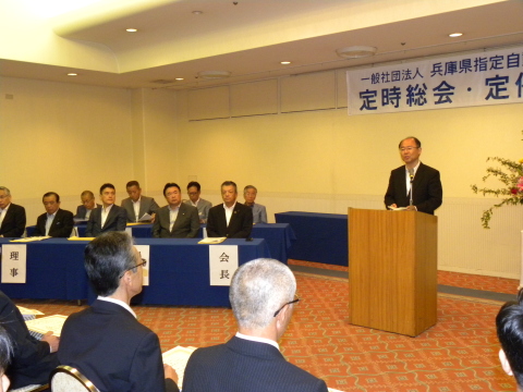 兵庫県指定自動車教習所協会(山口勝英会長)は5 月27 日、明石市のグリーンホテル明石で平成26 年定時総会を開き、平成25 年事業報告、同決算など全議案を原案どおり承認。任期満了となった役員の改選は山口会長、後藤忠毅、有馬洋一両副会長、黒田和彦専務理事ら全役員を再任した。