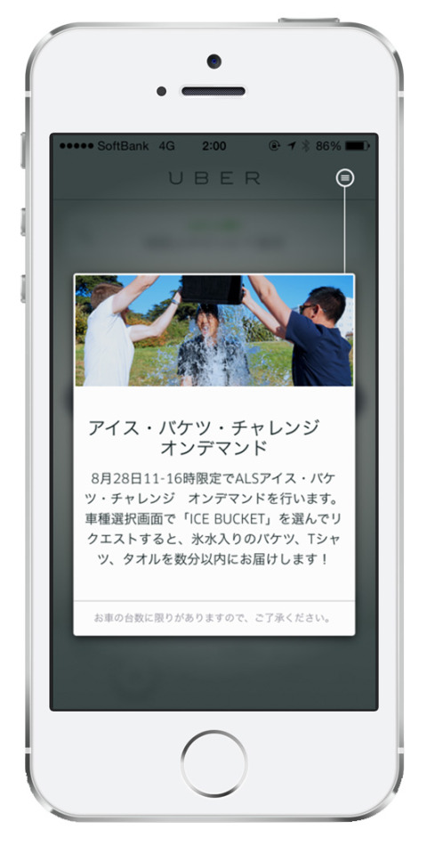 Uber、8/28限定「ALS アイス・バケツ・チャレンジ」