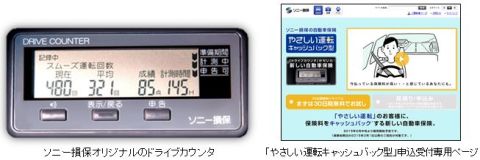 〜2014年11月17日から「30日間無料トライアル」の受付を開始します。〜 ソニー損害保険株式会社(東京都大田区、代表取締役社長:丹羽 淳雄、以下「ソニー損保」)は、急発進・急ブレーキの少ない「やさしい運転」をすると保険料が戻る、新しいタイプの自動車保険「やさしい運転キャッシュバック型」の販売を2015年2月中旬から開始します。 「やさしい運転キャッシュバック型」は、無料で貸与するソニー損保オリジナルの小型計測器(ドライブカウンタ)で計測した、加速・減速の発生状況(運転特性)を保険料に反映させる、日本で初めてのタイプの自動車保険です。 「20歳代の方が運転する」「等級が進行していない」といった保険料が高くなりがちなお客様でも、「やさしい運転」によりキャッシュバックを受けることで、保険料の節約が可能になります。 なお、ご自身の運転特性を計測されたことがあるお客様は少ないため、ドライブカウンタによる計測を無料でお試しいただける「30日間無料トライアル」も用意しました。「30日間無料トライアル」の受付は2014年11月17日から開始します。