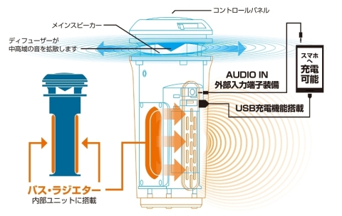 と簡単接続できるNFC(TM)とBluetooth(R)搭載の車載用スピーカー、『ブルー トゥーススピーカー YCS-100』を2015年3月1日に新発売いたします。 スマートフォンに入れている好きな音楽をドライブ中に楽しむことができます。 今、注目を集めている近距離無線通信技術のNFC(TM)を搭載しています。NFCフ ォーラムが開発した、NFC(TM)のシンボルマークである「Nマーク」同士をかざ すだけで簡単に接続します。 ハンズフリーで通話が可能です。さらに、USB充電機能を搭載し、充電切れの心配もなく音楽をお楽しみいただけます。 内部ユニットに大型バス・ラジエターを2つ搭載しています。ここから発生し た重低音が低音用ダクトから放出されます。