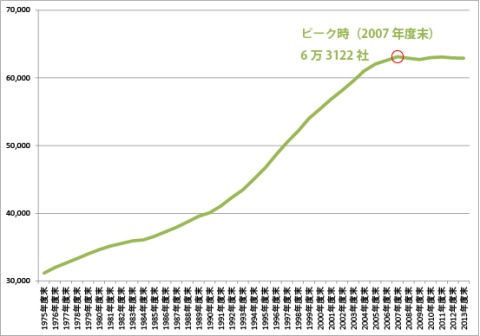 国土交通省は3月10日、2014年3月末時点の貨物自動車運送事業車数が6万2905社となり、12年度末に比べて31社(0.05%)減少したと発表しました。2年連続の減少です。内訳は特別積合せが4社(1.4%)減、一般27社(0.05%)減、霊柩37社(0.8%)増、特定37社(6.5%)減です。