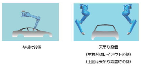同社は、「携帯電話などの小物用途から自動車などの大物用途まで、それぞれの用途に最適化した塗装ロボットを幅広くラインアップしています。このたび、自動車ボディやバンパー、建機などの様々な大形ワークの塗装に適用可能な新形塗装ロボットMOTOMAN-MPX3500を発売しました。塗装技術の進化や工程のコンパクト化などのニーズに柔軟に応えられる新製品の投入により、お客様の生産ライン構築に貢献いたします。」とのことです。 S軸(ベース部)とL軸(下アーム部)のオフセットをなくす事により、ロボットの動作範囲を最大化しました。これによりロボットをコンパクトにレイアウトすることができ、省スペース化を実現。塗装 ブースを最小化することによりブース空調によるCO2排出およびランニングコストの低減に貢献 いたします。またマニピュレータは左右対称レイアウトに対応可能な2タイプを用意。自動車ボディ、バンパー、バス、建機、鉄道車両等の大型ワークの塗装に最適です。 マニピュレータの軽量化により、床置き、壁掛け、天吊り設置が可能で、全ての設置条件において 各軸同じ動作範囲を実現。また軽量化により走行軸仕様における走行台車のコンパクト化および 低コスト化が可能。お客様のご要望にフレキシブルに対応いたします。 手首軸のモーメント・イナーシャ強化により大容量塗料充填式ベル塗装機などの大型塗装機を搭載できます。手首中空径は大口径φ70mmで余裕のある塗装機器配管が可能です。 マニピュレータには塗装機器搭載用内圧スペースを用意しました。塗装機器制御用ソレノイドバルブ最大48点、電空レギュレータは最大4点内蔵可能。塗料ギアポンプ用モータも最大2個内蔵でき、コンパクトな艤装を実現します。 高機能ロボットコントローラDX200により塗装機器の制御が可能。塗装に特化した機能により吐出量・高電圧・エア条件などの塗装条件をロボットプログラムにて直接制御可能です。 主な用途としては、 自動車ボディ、バンパー、バス、建機、鉄道車両等の大型ワーク塗装 ○販売開始 2015年6月18日 ○販売価格 オープン価格