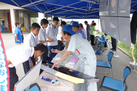 高校生らは五つの班に分かれ、それぞれ順番でブースを見学した。傾斜角度検査コースとスキャンツール診断実施では、自分で検査機器を操作したり、整備士の話を聞いたりすることで、整備士の仕事の内容についてイメージを膨らませた。会場には、次世代自動車等が展示されていた。高校生らは自動車の構造等についてスタッフの説明に耳を傾け、実際に展示車に乗り込んでいた。カラーマッチング・磨き実演では、整備士による展示を見学し、鈑金修理の工程と地域の自動車整備工場の技術力の高さを理解した。自動ブレーキ体験では、最新型の軽自動車に試乗した。最新技術の効果を体験した一方で、交通安全に対する意識を高めた。この他にも、衝突事故の衝撃を疑似体験してシートベルトの効果を再確認したり、自動車検査の実演を見学したりして、普段はできない貴重な体験を満喫しつつ、自動車整備業界全般についての理解を深めた。