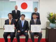 この表彰は、近畿運輸局独自の制度として始まり、平成13年度から今年で第15回目を迎えた。安全・安心な輸送サービスを提供し、自動車運送事業者自らが創意工夫と努力により、環境対策・福祉対策・地域活動等に積極的に取り組んで、社会貢献を果たしている活動を表彰する。 兵庫県からは、環境対策に関して都宝産業株式会社(龍山安雄社長)、加西合同貨物自動車株式会社(櫻井光男社長)の2社が受賞した。都宝産業株式会社は今回で4年連続の受賞となる。 天谷直昭近畿運輸局長は「今回受賞された事業者は、厳しい経営環境の中でも地域に密着した活動を展開され、道路運送事業者としての社会的使命を果たされております。より一層安心・安全なサービスの提供に磨きをかけていただくとともに、今回受賞された取組みを継続し、国民生活と経済社会の発展に尽力されることを期待しております」と述べ、受賞者に今後ともサービスの向上に努めるよう求めた。 坂本克己近畿トラック協会会長は「我々運送業界にとって、今ほど厳しい時代はありません。そのような時代の中で、皆様の社会貢献に対する、常日頃の絶え間ない熱い想いと努力が、今回の表彰に繋がっているのだと思います。今後も技術とノウハウを磨いて、天下一品のものにしていただくことをお願いします。皆さんは、我々の目標であります」と語り、受賞者に対して敬意を表した。 受賞者は次の通り。 【タクシー関係】 京都府:株式会社キャビック(福祉対策) 【トラック関係】 兵庫県:都宝産業株式会社(環境対策・4年連続)、加西合同貨物自動車株式会社(同) 大阪府:大協高速運輸株式会社(同)、有限会社大和商運(同)、株式会社ウイングエキスプレス(同)、関西運輸倉庫株式会社(同)、共同運輸倉庫株式会社(同)、港大宝運輸株式会社(地域活動)、株式会社ユーパワーロジ(環境対策)、野田運送株式会社(同)、愛知運輸倉庫株式会社(同)、大阪北運輸株式会社(同)、株式会社タイムス物流(同)株式会社ヨロズ物流(同)、大新運輸株式会社(同)、株式会社東陽運輸(地域活動)、ハウス物流サービス株式会社(同)、村岡運輸株式会社(同)、大裕重量運輸株式会社(同)、有限会社山義運送(同)、カリツー株式会社(同)、有限会社SMT(同・2年連続)、株式会社大輪物流(同)、株式会社ミヨシコーポレーション(同・6年連続) 奈良県:有限会社ヤマサン(同) 滋賀県:辻運輸有限会社(同)、株式会社雅産商(同)、東亜貨物株式会社(同)、株式会社中村組(同)