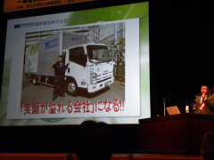 天谷局長は「去る1月15日に、長野県軽井沢町国道18号線で、スキーツアーのバスが道路からはみ出して転落し15名の方が亡くなる事故があった。大変痛ましい。心よりご冥福をお祈りし、 ケガをされた方々の一日も早い回復を願う。『交通の安全を確保し安心して利用してもらう』ことに交通事故対策の根幹がある。一層安全の意識を強め、その重要性を肝に銘じる必要がある。昨年の交通事故死者数は4117人で、これは対前年比4人増となった。15年ぶりの増加である。近畿では621名で80名増である。死者数全体のうち65歳以上の高齢者が占める割合は5割以上と高い水準で推移している。大阪府下では信号無視や飲酒運転の悪質運転が増えて、 その結果53名増なった。近畿運輸局では、『近畿グリーンナンバーセイフティプラン2010 』と題して平成31年度の事故死者数・人身事故件数半減を目指しているが、平成26年まで一度も未だ目標を達成できていない。一層の対策が必要だ。平成24年関越道でのバス事故をきっかけに高速貸切バスの安全安心回復プラン 平成26年の北陸道高速乗合バスの事故を受けた事業用自動車運転者健康管理マニュアルの改訂や、タクシー運転者登録制度を全国に拡大したり、試験に輸送の安全といった項目を追加したり、トラックについては、長時間労働の抑制といった重大事故につながる労働環境の改善をしたりしている。しかし、交通事故が多発している現状を鑑みれば、これで十分といったことは無い。さまざまな対策を決めて実行に移さないといけない。安全の意識を管理者から現場まで持ち続ける。『事故の特徴に対する有効な事故防止対策』というテーマ 事業用自動車事故調査委員会 事故調査を実施し有効な事故再発防止策を提言することとなった。皆様に一つでも多くのものを持ち帰っていただき、安全運行に役立てていただきたい。安全は経営者から現場の一人ひとりの意識の問題で、経営者にとっては安全が失われることが経営の最大のリスクであると今一度認識していただきたい」と防止推進に一層の協力をもとめた。 講演は、酒井雅彦・近畿運輸局自動車技術安全部長が「事業用自動車の事故防止対策」について述べた。酒井氏は安全プラン2009についての目標達成の中間経過についてとその見直しと新たな追加施策の7項目を説明した。 安部誠治・関西大学社会安全学部教授は「自動車事故調の提言〜事業用自動車事故の防止と減災〜」と題して講演。安部氏は「太平洋戦争等の310万人全員の犠牲者を除き、1946〜2014年まで交通事故死者は62万7千人でその比率が高い。また、タクシーの事故件数は高止まりで推移、バスは減少傾向、トラックの死者は376人(2013年)と多く、安全対策の課題である」とした。また2014年6月に発足した事業用自動車事故調査委員会が公表した6件の調査結果について分析して、いずれも運行管理者の役割が極めて重要とした。衝突被害軽減ブレーキの導入、過労運転防止に資する機器の開発、普及も提言した。浦部勝弘・近畿運輸局自動車技術安全部保安・環境課自動車事故調査分析官が「近畿運輸局の事故調査結果」について講演し、事故調査結果と分析について報告した。 また事業者の取り組み防止事例について、安川孝之・京都バス(株)運輸部次長が「ドライブレコーダーを活用した事故防止の取組み」について、越野泰弘・越野運送(株)代表取締役が「永続する企業への布石」と題して、安全教育サイクルによる無事故継続への取組みについて述べた。参加者約400人。