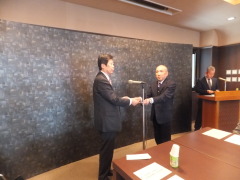 贈呈式は同日、和歌山市納定10の1の医療法人スミヤ・角谷リハビリテーション病院で行われ、徳野理事長から小濱同法人理事に目録が贈られた(写真)。 徳野理事長は「当協会は、安全・安心な車社会の構築・交通事故防止活動および不幸にして交通事故にあわれた方の支援を行っており、(公財)交通遺児等育成基金および近畿2府4県の社会福祉協議会に寄付するなどの公益事業を積極的に行っています。この度公益事業の一環として和歌山県内13の病院に自走式車椅子13台を寄贈しました。この事業は平成22年度に大阪府ではじめ、これまで兵庫県、京都府、滋賀県、奈良県と毎年実施、本年度は和歌山県で行うもので、高齢者の方等の社会生活の一助としてご活用いただければ幸いです」と挨拶した。 また小濱理事からは「私どもにとって車椅子は大変ありがたい贈りもので大切に使ってまいります」と謝辞があった。