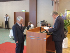 平尾文一副会長の「公共交通機関のタクシーの使命を認識し、受賞を心の糧として業界の発展に寄与してください」との開式の辞で始まり、五十嵐一俊副会長の選考経過の後、吉川紀興会長から各部門の受賞者代表に賞状、記念品が贈られた。吉川会長は「タクシーの適正化、活性化に取り組んでいるが、そのためにはタクシーサービスの向上が必要であり、乗務員の資質向上が不可欠。利用者の信頼に応えることが重要である」と述べ、信頼されるタクシーへの努力を求めた。 来賓祝辞で藤本実・神戸運輸監理部兵庫陸運部長は「輸送の安全、安心を実践された受賞者に心から敬意を表します。業界だけでなく行政としても大変心強い。輸送のプロとして他の模範となって活躍ください」と称えた。池田典孝・兵庫県警交通部交通企画課調査官、妹尾裕治・兵庫労働局基準監督課主任監察監督官からも祝辞があった。 受賞者を代表して武岡埾秀氏(和光タクシー)が「ルールを守り、明日に向かって希望を持ち、利用者利便の向上に努める」と謝辞を述べ終えた。 今回の受賞者は76人で、20年優良乗務員表彰は、黒田弘文(朝日交通)、松本正積(同)、中村博之(キクヤ交通)、武岡埾秀(和光タクシー)の4氏。10年優良表彰は、稲森正幸(朝日交通)、宮下芳夫、岡部司郎、竹島剛、新山博文=以上神戸相互タクシー、岸本寛(駒姫交通)、森本勉(同)、長岡篤志、甲斐富美男、稲田茂司、伊藤敦=以上日本交通、池田正廣(阪神タクシー)、木村次男(増位タクシー)、阿比留英文(和光タクシー)、山崎義夫、神野欣永、塚幹生=以上キクヤ交通の17氏。 一般優良表彰は宮内光和氏(阪神タクシー)ら46人。 篤行従業員表彰は鈴木直治(神戸相互タクシー)、岩上秀一(フクユ)、山本俊男(キクヤ交通)の3氏。 運行管理者表彰は、植村満雄氏(神戸相互タクシー)。 整備管理者表彰は、武本裕(扇タクシー)、高木悟(協和タクシー)、坂元純晴(阪神タクシー)、福中康雄(同)、樫本成紀(増位タクシー)の5氏。