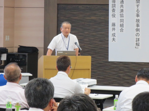 第一部は山内理恵子・特定社会保険労務士が「労務管理からの事故防止対策について」との演題で講演した。山内氏は「運送事業で事業場、車両管理、運行管理、ドライバーの体調管理等の労務管理は安全を高めることで『この会社で働き続けたい』と思ってもらうことは会社の成長・経営の安定に不可欠である」と述べ、米国の心理学者フレデリック・ハーズバーグの「動機づけ─衛生理論」を引用して「職場環境を快適にしても従業員はモチベートできず、不満要因と幸福要因とは一致せず、達成感や仕事そのもの、昇進、成長の可能性などキャリアアップが仕事の満足要因となる」と講演を行った。労働基準法など関連諸法の要点を解説して「不満要因となる公平なルール整備と成長すれば認められる満足要因の人材育成と評価を築くことが重要。労務管理は企業の成長につながる」と述べた。 第二部は同共済協同組合補償部の藤井成夫・指導調査役が「当共済に関する事故事例の詳解」と題して「当共済の人身事故の約60%は追突事故である」と述べ、追突事故の事例とドラレコから判明した事故状況で「映像判断で弁護士の見解では当方0相手100の過失とのことで、ドライブレコーダーがなかったら相手側の有利となるところだった」と解説した。