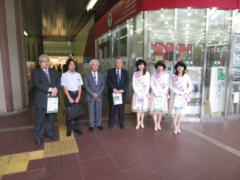 神戸市タクシーマナー向上推進会議は10月3日、JR三ノ宮駅や新神戸駅のタクシー乗り場で乗客とのコミュニケーションに役立つチラシやリーフレット、指差し外国語シートなどをドライバーに配布し啓蒙活動を行うタクシーマナー向上キャンペーンを行った。