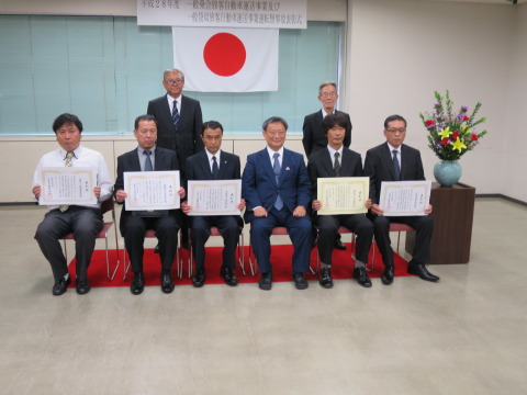 若林局長は挨拶で「昨年の交通事故による死者数は4017人、前年比で4人増となっている。15年ぶりに増加している。バスの事故は1646件と減少傾向にはあるものの、今年1月には長野県で起きた軽井沢スキーバス転落事故が発生しました。国土交通省では、このような事故を二度と起こさないために、軽井沢スキーバス事故対策検討委員会において、再発防止策を検討し、6月3日、安全・安心な貸切バスの運行を実現する総合的な対策を取りまとめた。その一環として臨時国会において道路運送法の改正について閣議決定された。これらの対策を早期かつ確実に実施し、貸切バスの信頼回復に努めたい。今回受賞された事業者は公共交通における安全の重要性について深く理解され、運転者から経営のトップまで不断の努力を続けてきた方たち。改めて敬意を表する。取り組みがバス事業界全体のより一層の安全意識の向上につながることを期待している」と受賞を称え、無事故の継続を求めた。 受賞者を代表して、大阪空港交通(株)の西村幸久社長は「最大の課題が達成できたのは、ご指導・支援のたまものと感謝します。これまで強固で広範な安全対策に取り組んできたが、軽井沢での事故が1月に発生した。この事故を忘れることなく、信頼回復に向け運輸安全マネジメントにおける取組み、バス事業における総合安全プラン2009をこれまで以上に推進するとともに安全、安心な貸切バスの運行の実現と信頼を取り戻すための総合的な対策における具体的な方針に基づき、さらなる安全対策を実行できるよう取り組んでいく」と謝辞を述べた。 受賞会社は次の通り。 【大阪】 緑風観光(株)、大阪空港交通(株)、関西中央交通(株)、サザンエアポート交通(株)、(株)トーヨーふれ愛バス、(有)はまゆう観光、産交バス(株)、(株)クレベ、大阪バス(株) 【兵庫】 (株)三共運輸、日産チェリー佐用販売(株)、淡路交通(株)、神姫観光バス(株)、姫路観光バス(株) 【奈良】 (有)高田交通、(有)葛城交通 【滋賀】 滋賀観光バス(株) 【和歌山】 中紀バス(株)、中紀河南タクシー(株)、日の丸観光バス(株)、有田鉄道(株)、(株)クリスタル観光バス