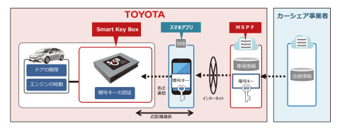 MSPFは、トヨタがこれまでライドシェアなどのモビリティサービス事業者と提携する際、開発、提供していた車両管理システムやリースプログラムといった個別の機能を包括したプラットフォームです。トヨタは今後、このMSPFをカーシェアやライドシェアといったモビリティサービス、テレマティクス保険など、さまざまなサービス事業者との連携に活用していくとのことです。 また、今回トヨタはMSPFの一機能として、カーシェアにおいて安全かつ安心なドアロックの開閉やエンジン始動を実現するためのデバイス、スマートキーボックス(SKB)を開発しました。この実証プログラムを、米国で個人間カーシェアビジネスを手がけるベンチャー企業「Getaround」社と共同で、カリフォルニア州サンフランシスコを皮切りに、来年1月より開始します。実証プログラムで活用するMSPF内の機能の開発、運営は米国におけるトヨタのコネクティッド領域の研究開発会社、Toyota Connected, Inc.(以下、TC)が行う予定です。また、今回の協業に際し、本年10月には未来創生ファンドからGetaround社へ戦略的出資を実施している。 従来、カーシェアの利用に不可欠な鍵の受け渡しにおいては、利用者と車両の所有者がコンソールボックス内に鍵を置くなどして受け渡しを行うか、特殊な通信装置を車両のCANに直接接続することで鍵の開閉などを行っていた。そのため、セキュリティ面での課題があった。 SKB端末を車内の任意の場所に設置し、車両の利用者は、スマートフォン上のアプリを操作することで、トヨタスマートセンターからSKB端末にアクセスするための暗号キーを受信。利用者がそのスマートフォンを車両に近づけると、SKB端末との間で暗号キーが認証され、通常のスマートキーと同様に鍵の開閉などの操作を行うことができます。操作可能な時刻や期間は、利用者の予約内容に応じてセンターで設定・管理される。 今回のGetaround社との実証プログラムの中では、SKBのカーシェアにおける効果、利便性の検証を行うほか、トヨタファイナンシャルサービスとも連携し、車両所有者による車両リース代金の支払いにカーシェア収入を充てる、新たな金融商品の開発も行うとのことです。