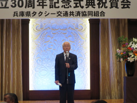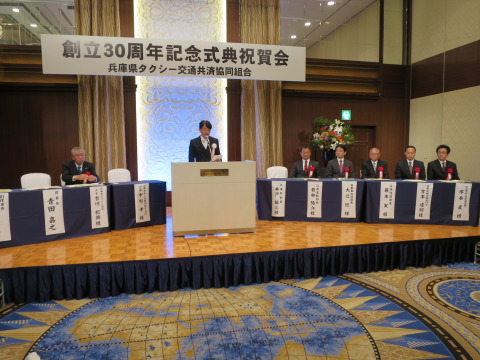 兵庫県タクシー交通共済協同組合(青田嘉之理事長)は11月1日、神戸メリケンパークオリエンタルホテルで、来賓に近畿運輸局の若林陽介局長、大辻統・自動車交通部長、井戸敏三・兵庫県知事をはじめ、関係機関・タクシー共済協組代表者ら多数の来賓を迎え、盛大に創立30周年記念式典祝賀会を開催した。