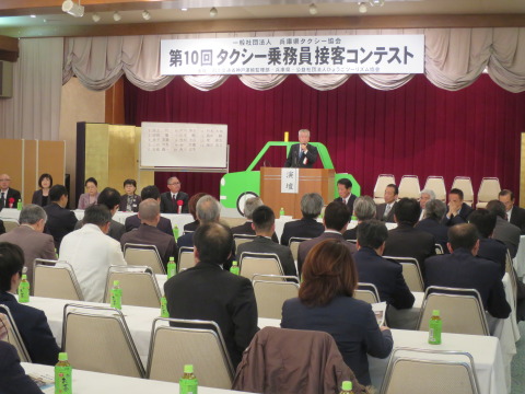 競技は、自己紹介、ロールプレイング方式で行われ、JR三ノ宮のりばからポートピアホテルのコース。高齢者、車イス、視覚障がい者、酔っ払いの利用者への対応、お客からの急いでいるとの要望、シートベルト着用、料金の不服申し立て、喫煙要望の課題が与えられ、これに対応した。 総評で、審査委員長の藤本実・兵庫陸運部長は「出席者全員のレベルが高く、僅差の選出となった。接客と、接遇の違いは、接遇はおもてなしの心を込めることだと思う。心のこもった接客の輪を広げてください」とした。