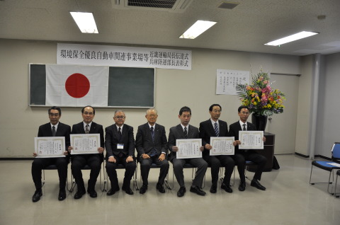 また兵庫陸運部長表彰は、(株)神戸マツダ、(株)阪急阪神エムテック宝塚工場、同芦屋浜工場、神姫商工(株)の3社4営業所が受賞した。 表彰に際して、藤本部長は「皆さま方が常日頃から環境対策に取り組んでおられ、敬意と感謝を申し上げます。国土交通省では地球温暖化の主な原因の一つとされるCO2の削減に向けて省エネルギー対策など調和のとれた車社会を目指しており、引き続きご協力を願うところです」と述べ、式辞とした。 続いて橋本一豊・環境に優しい自動車関連事業場の兵庫県推進協議会会長は「温暖化防止対策について、低炭素社会実現のためCO2排出量削減の推進とともに、資源の再利用と費用の低減につながるリサイクル・リユース部品の利用促進に取り組む必要がある」と環境対策へのさらなる努力を求めた。 来賓の菅範昭・兵庫農政環境部環境管理局環境整備課長は「自動車リサイクル法が施行されて11年。皆さま方のご尽力により、使用済み自動車の99%がリサイクルされている。引き続きこのシステムが維持されるように努めるとともに、循環型社会の構築に向けてご協力していただきたい」と祝辞。 上野勝文・有限会社上野自動車工業専務取締役の「低炭素社会の推進に向け、省エネルギーはもとより、事業場から排出される二酸化炭素の削減に努め、環境に配慮した事業運営に引き続き取り組む」との謝辞で閉式した。