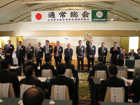 任期満了となった役員改選で、津田理事長の5選をはじめ、副理事長に石井剋久、中島浩、奥田総一郎、三幡和美、各氏と新たに田中則夫氏を選任、専務理事に前田実氏を再選、新理事に西良太郎、倉垣義幸、佐古井隆彦、藤田洋一、山本渉の各氏が、新監事に原田秀明氏が就任。退任理事は、古川五夫、鍋島賢城、泉田如大、内橋健、足立進、小西憂樹。退任監事は、佐古井隆彦氏。 古川五夫氏は相談役に就任し、その他役員は再選となった。 新役員を代表して津田理事長は「今回理事長をお受けしてから5期10年。あまりにも長すぎると感じるが、小倉日車協連会長と共に先進安全な車体整備士教育を目指し、高度な技術と安心な事業所づくりに後2年頑張って参りたい」と述べ、今期限り続投すると決意を述べた。 来賓祝辞で小倉龍一・日本自動車体整備協同組合連合会会長は「懸案の高度化車体整備技能講座を今年から開始する。全国の先頭を走る兵車協に先進技術を進取して業界を牽引してほしい」と。 また藤本実・兵庫陸運部長は「車体整備の高度化に対応、また環境にやさしい車社会の実現を目指していただきたい。行政も後押ししたい」と祝辞。 続いて桑村勝彦氏(足立自動車株式会社)の30年勤続理事長表彰、津田サヨ子氏(有限会社津田自動車)らの日車協連会長表彰伝達式が行われた。 懇親会は、奥田総一郎副理事長の「年に1度の総会は組合をより良くするための会合。出席の皆様に感謝します」と開会挨拶で始まった。 山本喜一・兵庫県自動車整備振興会専務の「顧客を大事に、人材育成に取り組み、高度技能への対応が三本柱」との祝辞のあと、山元康史・近畿車体協連合会長の乾杯発声で開宴、カラオケ大会などで大いに盛り上がった。