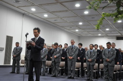 五十嵐理事長は式辞で「タクシー業界は年々増していく輸送需要の減少、乗務員不足と高齢化の進展と、大きく変革しないといけない。タクシーは安全で安心、運転者との疎通が良く、ドア・ツー・ドアという特性を生かし、社会的交通として認知してもらう努力をしなければならない。人の命を運ぶタクシー乗務員は常に安全意識を持ち、交通事故は絶対に起こさない心構えで慎重な運転をお願いしたい」と述べ、式辞とした。 稲村和美・尼崎市長は来賓祝辞で「安全運転のプロとして、市民の暮らしを支える役割というのはますます重要になると思います。平成30年には尼崎城を再建するプロジェクトが進んでおり、市外からのお客様をたくさん迎える街にしたいと思います。皆さまにはそういったおもてなしの先頭に立っていただく役割をお願いします」と述べ、受賞者を激励した。 続いて藤本実・兵庫陸運部長は「本日の受賞は個人の名誉であるとともに、行政としても誇りです。タクシー最大のサービスは輸送の安全である。利用者の方から、また乗ってみたいと思ってもらえるように、コンプライアンスを含めしっかりとした対応をお願いします」と述べ、祝辞とした。 また服部玉記・兵庫県尼崎南警察署署長の代理で小林竜太・地域交通官は「今回の受賞で他の乗務員の模範となる交通事故抑止のリーダーとして頑張っていただきたい。尼崎市に限ると自転車と車の事故が36.6%で一番多い。これに気をつけると共に啓発活動や指導をして頂きたい」。 最後に受賞者を代表して、棚村隆夫氏(株式会社アドバンス)が「タクシーはお客様を安全に目的地まで輸送するのが使命で、私達は交通法規を遵守し、安全運転を心がけます」と謝辞を述べ、閉式となった。