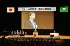 神戸開港150年記念事業実行委員会は5月19日、神戸ポートピアホテルで神戸開港150年記念祝賀会を行なった。