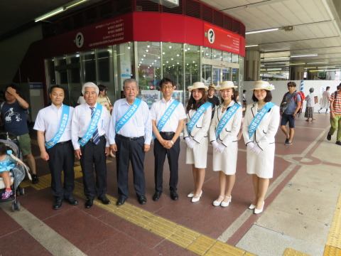神戸、阪神間支部の22カ所のタクシー乗り場では、午前11時から夕方まで各事業所の幹部が出動してタクシ−利用をPRしたが、JR三ノ宮駅タクシー乗り場には、吉川会長、五十嵐一俊副会長、奥篤専務理事等が出席、岡田研二・兵庫陸運部長、吉本道明同首席運輸企画専門官も出動して、キャンペーンガールを交えて出発式を行った。吉川会長は「日頃は乗務員がタクシーサービスを担ってくれているが、今日一日は皆様と共に我々が主体となってタクシー利用を訴え、サービスに努めたい」と挨拶。 当日1万個のポケットティッシュと300円利用券3600枚を配布した。