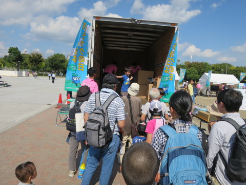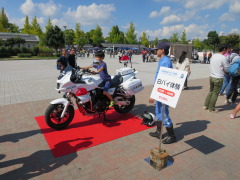 晴天に恵まれたこの日は、正午から主要イベントのスタンプラリー受付には行列が出来る盛況な出足となった。会場には、トラックをアピールするクイズやミニゲームブースを設け、また警察、JAFの協力を得て白バイ乗車体験、子ども免許などファミリー向けのコーナー、シートベルトコンビンサーを持ち込む効果体験、エアバッグシュミレーション体験、その他トラックの荷台に5kgの段ボールを積載するゲームなど本物のトラックを使ってのゲームも家族連れに人気があった。会場中央のトラックステージでは開始早々、黒田智也・兵ト協青年協議会会長が「トラックは、産業と市民の暮らしを支え国内貨物の91%を運んでいる物流の基幹産業です」と。 また平戸伸和・同副会長は「緑ナンバーのトラックは排ガスのクリーン化に努め、環境対策にも努めています」とアピール。同会場では姫路で活躍のKRD8のミニライブ、兵庫県警音楽隊による演奏などで終日賑わった。主催者によると参加者は約5千人、スタンプラリーへは600人余が参加した。
