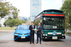 ラグビーワールドカップ2019アンバサダーを務める元木由記雄氏が神戸市役所1号館第二応接室を訪れ、優勝トロフィーとともに久元喜造市長を表敬訪問した。その後、東遊園地の芝生広場南側でラグビーワールドカップ特別仕様ナンバープレートが取り付けられた神戸市所有の燃料電池自動車MIRAIと神戸交通振興株所有のシティー・ループが披露された。 元木氏は「会場に来てもうために、まずはラグビーの魅力を知ってもらいたい」と語った。