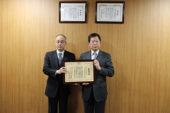近畿陸運協会(徳野辰夫理事長)は11月21日、同役員室において、公益財団法人交通遺児等育成基金に寄付金を贈呈した。寄付金は徳野理事長より独立行政法人自動車事故対策機構大阪主管支所の支所長・新屋敷昭一氏へ贈られた。その後、徳野理事長に感謝状が手渡された。