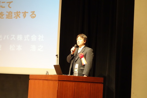 理することが重要」と説いた。ドライブレコーダーから収集したトラック事故の事例を多数紹介し、初心者が起こすような事故を職業ドライバーでも起こしている現実があることを指摘し、さらに危険予測能力が低い傾向にある若年層が今後社会に出ていく際に、「ベテランドライバーの知恵を使い教育し、全体のレベルアップをしていくことが必要」だとドライバー教育の重要性について述べた。具体的な教育方法の一例として、ジャイロセンサーを用い左右の安全確認を行ったか、ペダル操作を検出し適切なブレーキ準備を行っていたかなどの ドライバーの動きを検出して点数化する技術について紹介した。点数化することで客観的な指標が得られるだけでなく、個々のドライバーの運転行動を収集することでリスク傾向を特定するためにも有用だという。「今後は、従来の集団対応での講習や実技訓練を基本としつつも、個々の運転診断や診断結果に基づく適切なフィードバックなどの個人対応でリスク管理を行うことが必要になってくる」との見解を示した。 最後に、みなと観光バス株式会社代表取締役の松本浩之氏が「究極の安全運行とお客様に有益な情報提供を目指して」と題した講演を行った。昨今の課題としてバス運転者の高齢化を挙げ、人手不足問題はトラック業界なども含めた共通の深刻な課題としつつ、一つの解決策として自動運転・自動走行について触れた。昨年11月から12月にかけてNTT ドコモらと協業し実施していた神戸市北区での自動走行の公道実証実験について取り上げ、無事故で無事終了したことを報告する一方で、「取り組めば取り組むほど現実的には難しい点が多々あると肌身で感じた。テクノロジーは日進月歩だが、まだまだ10年20年はドライバーが担い手となって、今まで以上に安全安心な運転をしてもらうことが重要」と語った。また、IoTを活用したバス運行支援で業務効率化を行い、人手不足の解決を目指す取り組みとして自社開発のデジタコ& マルチロガー「Docor( ドコール)」を紹介した。松本氏は「事故を無くすということが利益貢献になり、企業の社会的な信用度も高まる。事故ゼロを達成するために今後も取り組んでいきたい」と語った。