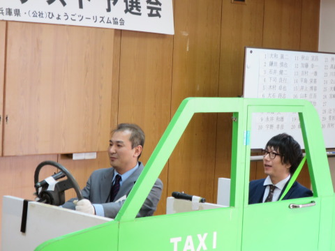 第11 回目を迎えた兵庫県タクシー協会(吉川紀興会長)の接客コンテストが2月19日、生田神社会館で開催されるが、1月22、24両日、姫路と神戸の予選会が開かれた。姫路予選会は9人が出場、コースは姫協会館から千代田町―JR 姫路駅北側までの970円コース。神戸予選は29 人が出場、兵タ協会館から北野坂―JR新神戸駅までの1080円コースで、客の出迎え態度、車内接客、料金、領収書の収受や、降車時の対応等接客を競った。審査員は両会場とも、吉本道明・兵庫陸運部首席企画専門官、堂本艶子・兵庫県消費者団体連絡協議会副会長、浦本誠子・兵庫リーリズム協会ホスピタリティマネージャー。奥篤・兵タ協専務理事、岡本幸司・兵タ協総務課長の5氏。